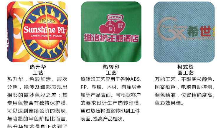 logo工艺:丝印/绣花/热转印/柯式烫画
