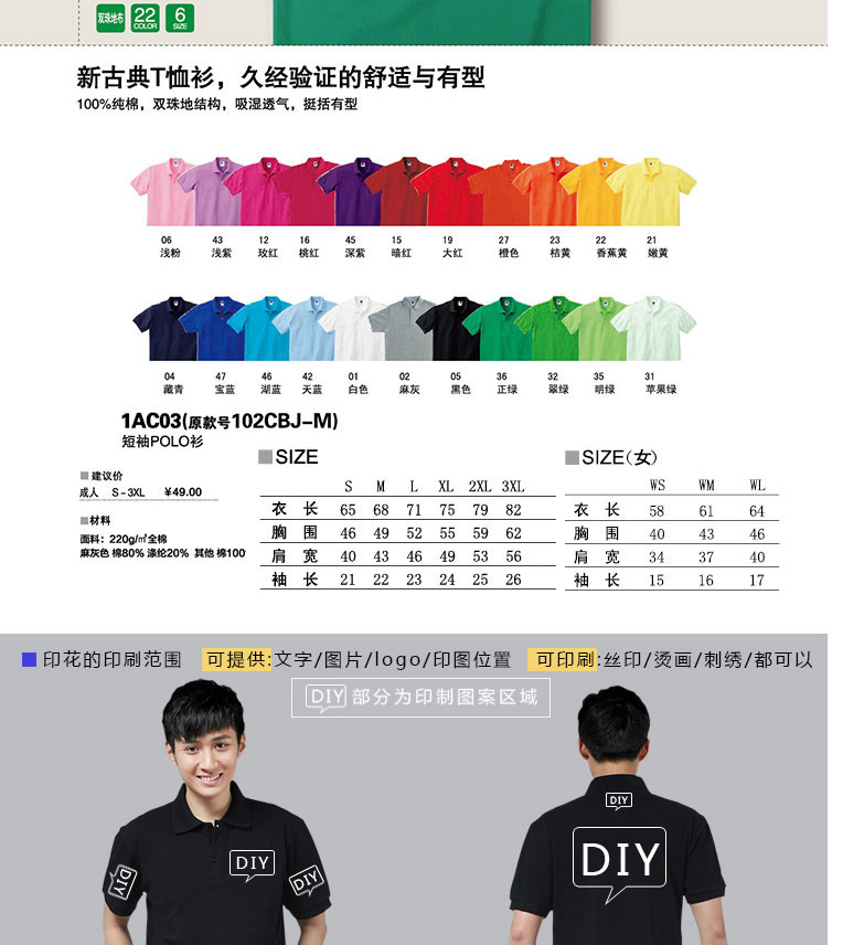POLO衫定制T恤diy定做夏季广告衫短袖翻领T恤工作服定制刺绣logo
