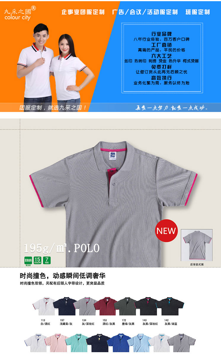 195gCVC双色成人短袖POLO