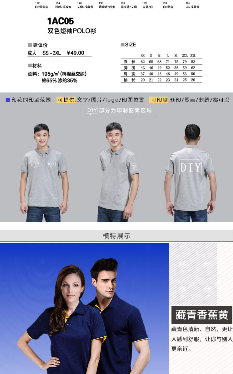 产品材质:65%棉 35%涤纶
