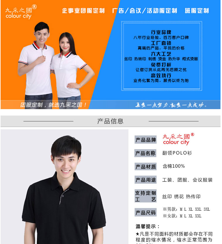 POLO衫定制T恤DIY衣服定做班服订做文化衫制作广告衫印字工衣短袖