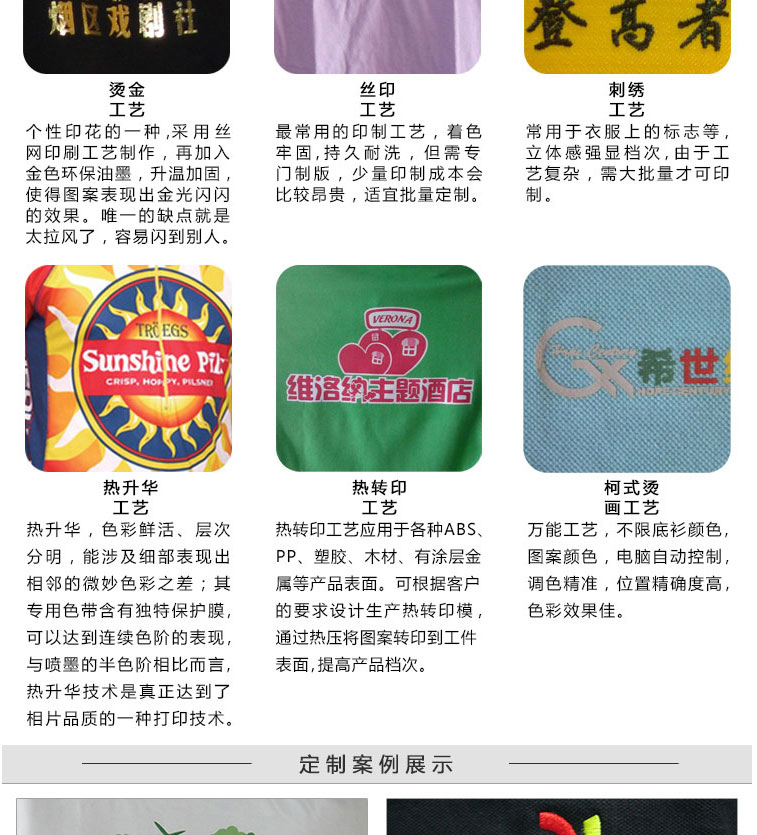 logo工艺:丝印/绣花/热转印/柯式烫画