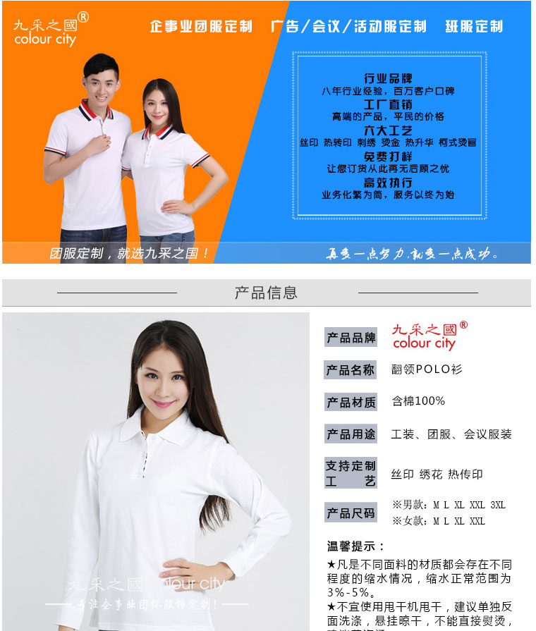 POLO衫定制T恤DIY衣服定做班服订做文化衫制作广告衫印字工衣长袖