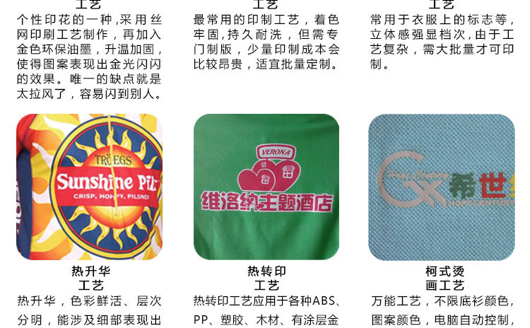 logo工艺:丝印/绣花/热转印/柯式烫画