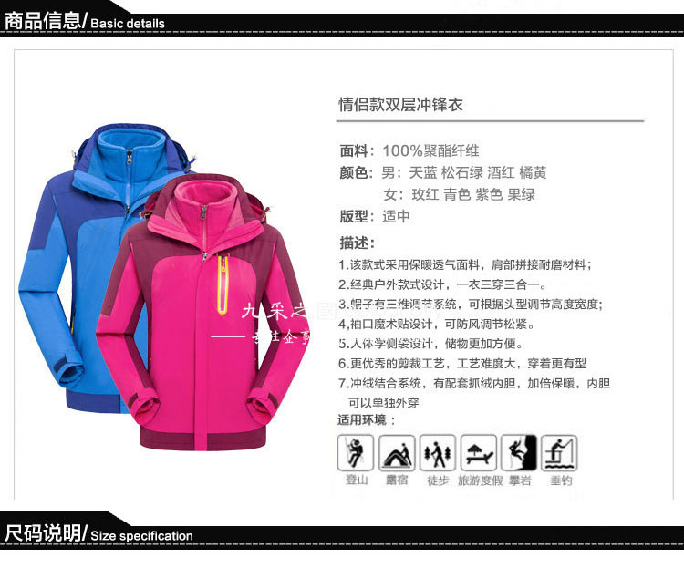 户外两件套男女款冲锋衣可拆卸加厚内胆定制团队防寒工作服加logo