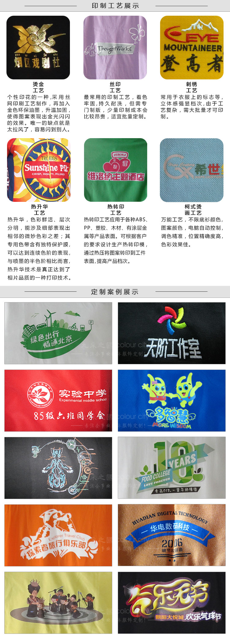 logo工艺:丝印/绣花/热转印/柯式烫画