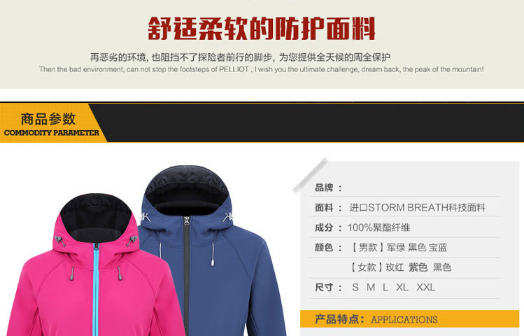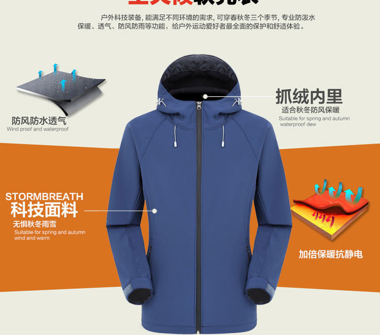 户外新款防水弹力男女款情侣9918款登山服软壳衣抓绒衣单层冲锋衣