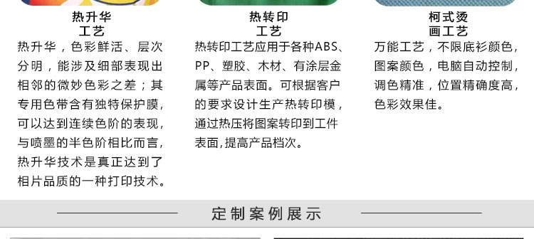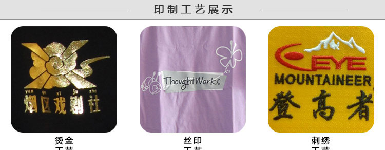 logo工艺:丝印/绣花/热转印/柯式烫画