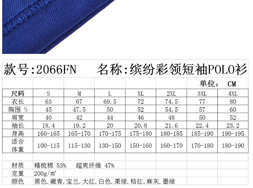 200克40支纱超爽纤维POLO衫 通码 9色