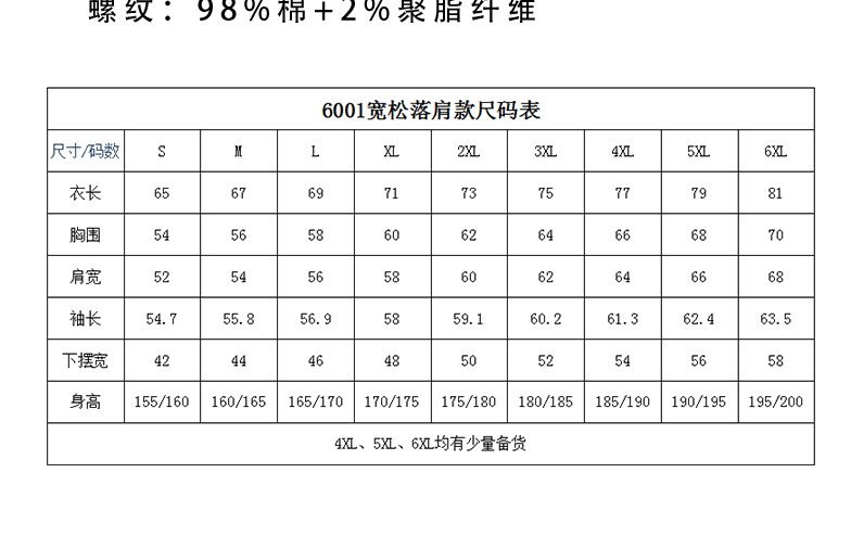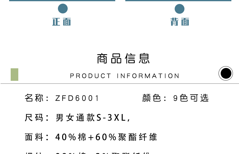 商品货号:6001产品材质:阳光绒产品规格:S-4XLlogo工艺:丝印/刺绣/烫画起订数量:10件制作周期:5-7天包装方式:OPP袋适用场合:市场推广/会议活动