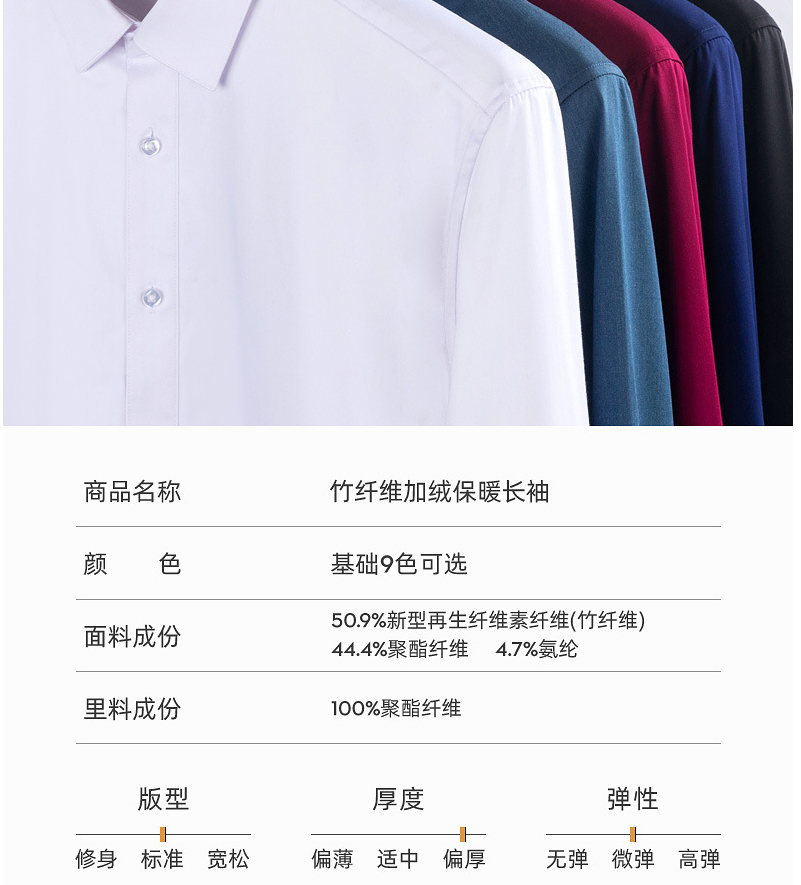 2020秋冬新款竹纤维男式纯色加厚加绒衬衫男装长袖弹力保暖衬衣男