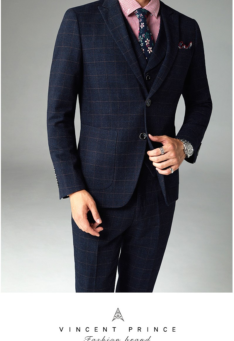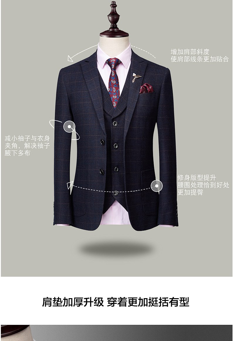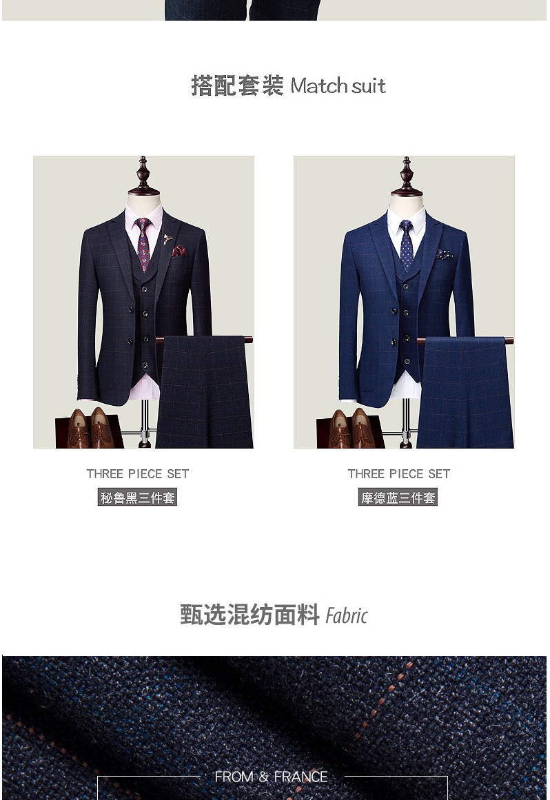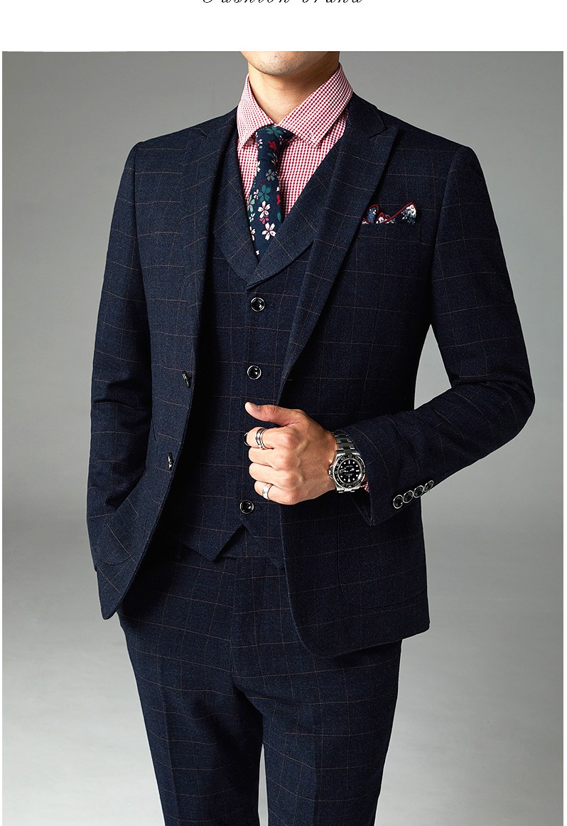 西服套装男婚礼修身韩版结婚礼服休闲正装定制格子西装三件套