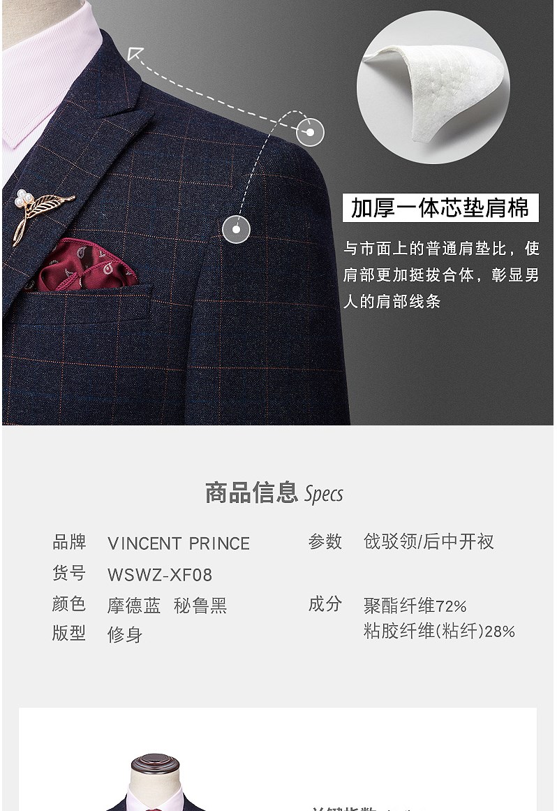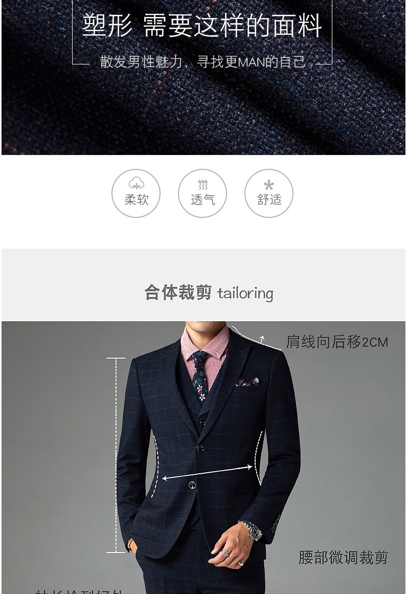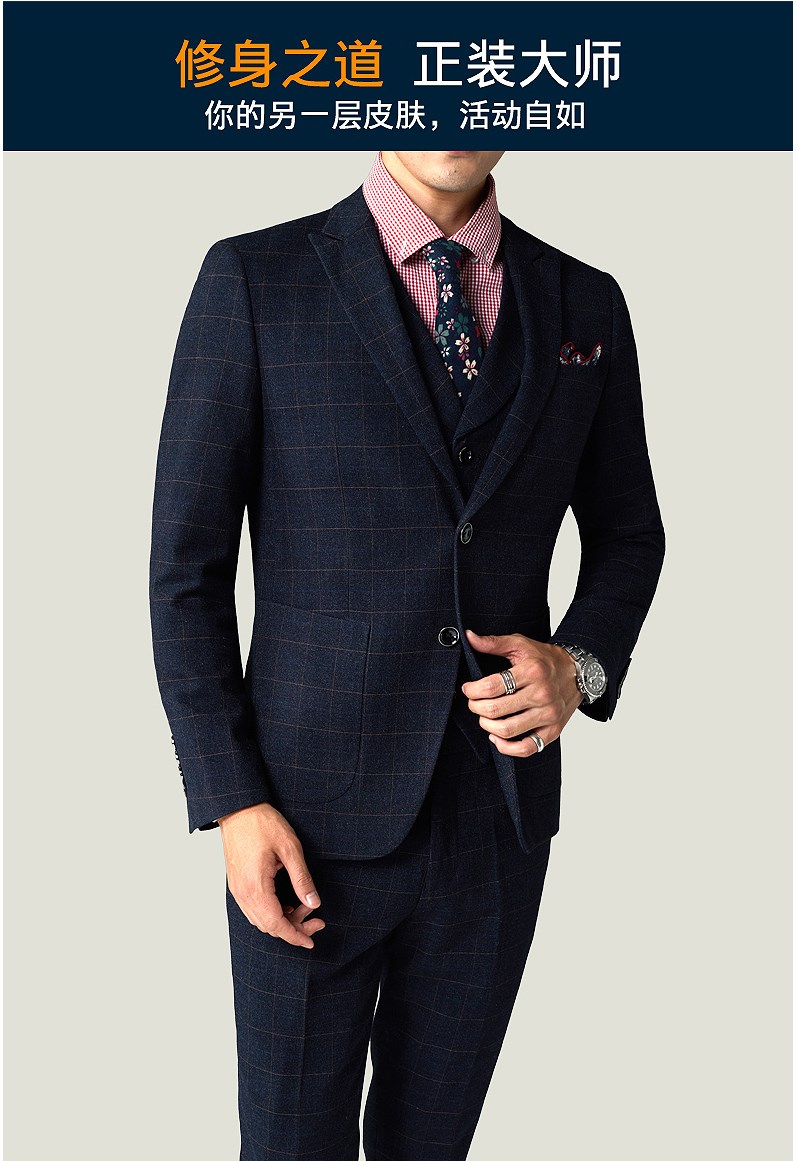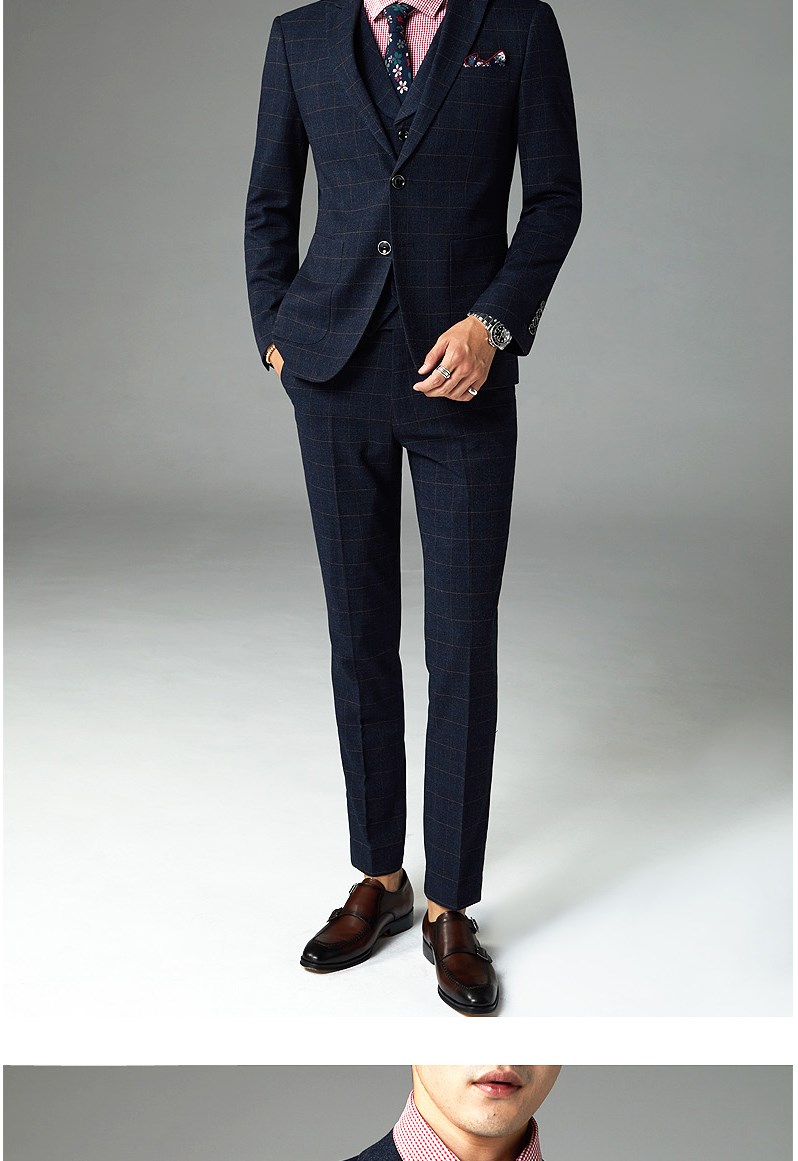 西服套装男婚礼修身韩版结婚礼服休闲正装定制格子西装三件套