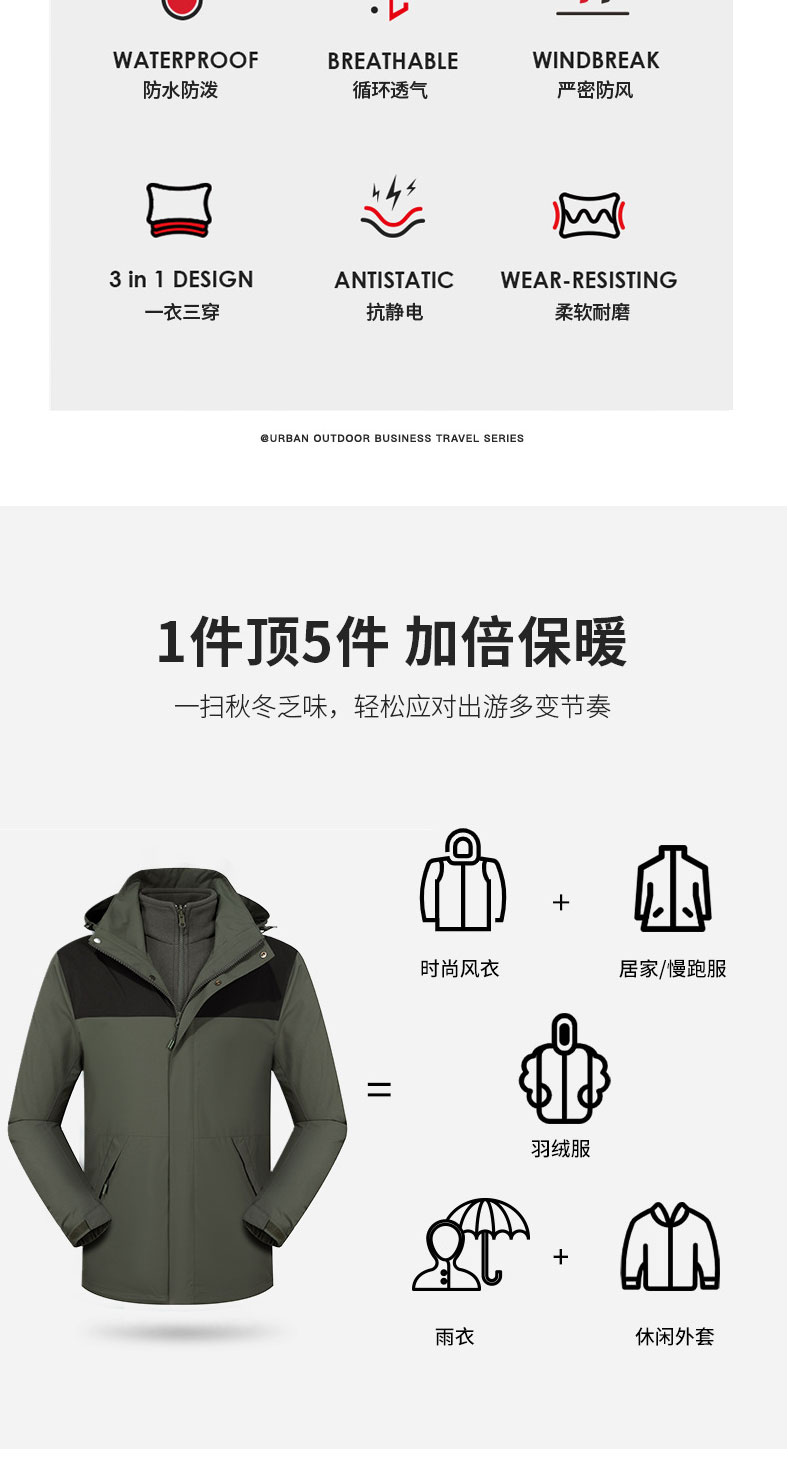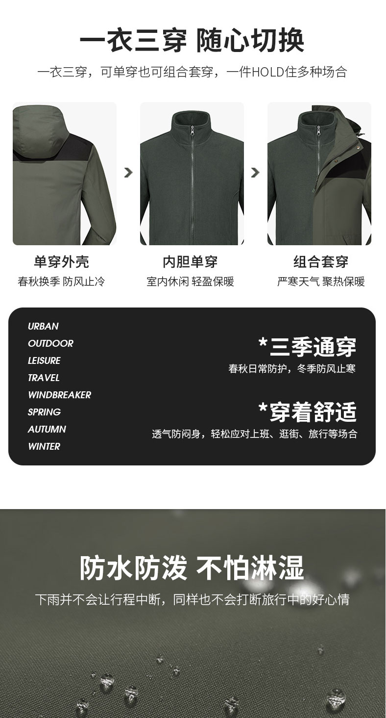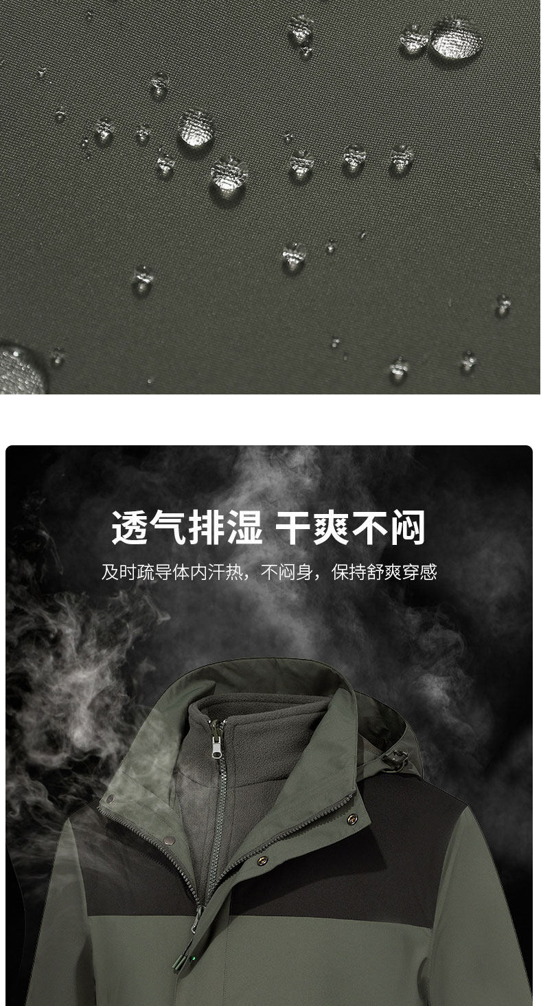 秋冬新款三合一休闲冲锋衣男时尚潮户外旅行风衣女防水御寒外套