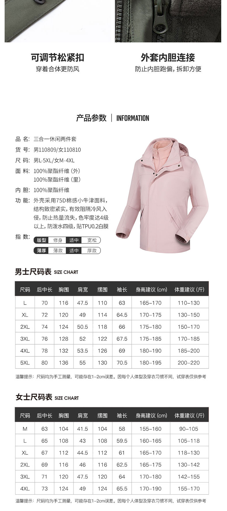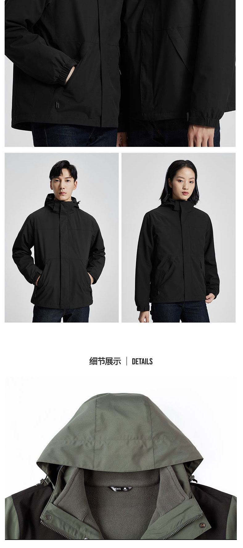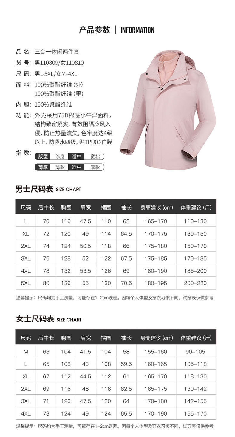 秋冬新款三合一休闲冲锋衣男时尚潮户外旅行风衣女防水御寒外套
