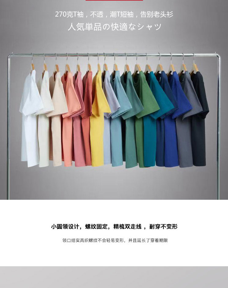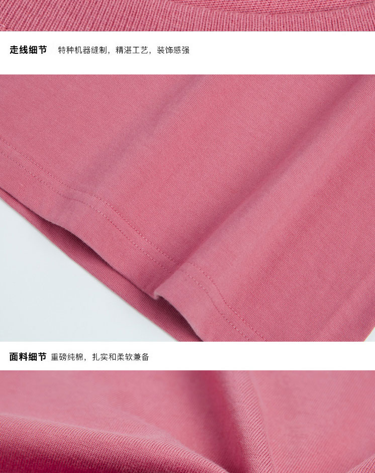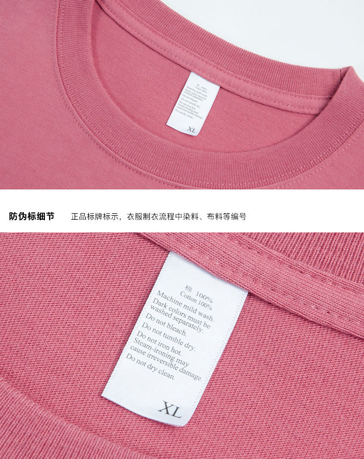 300克纯棉日系重磅阿美咔叽美式复古纯色圆领打底男女桶织T恤