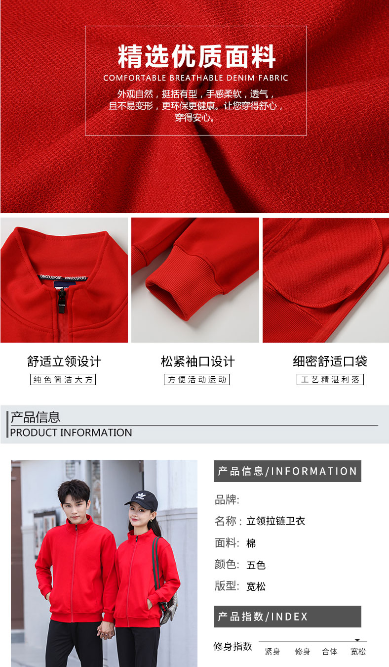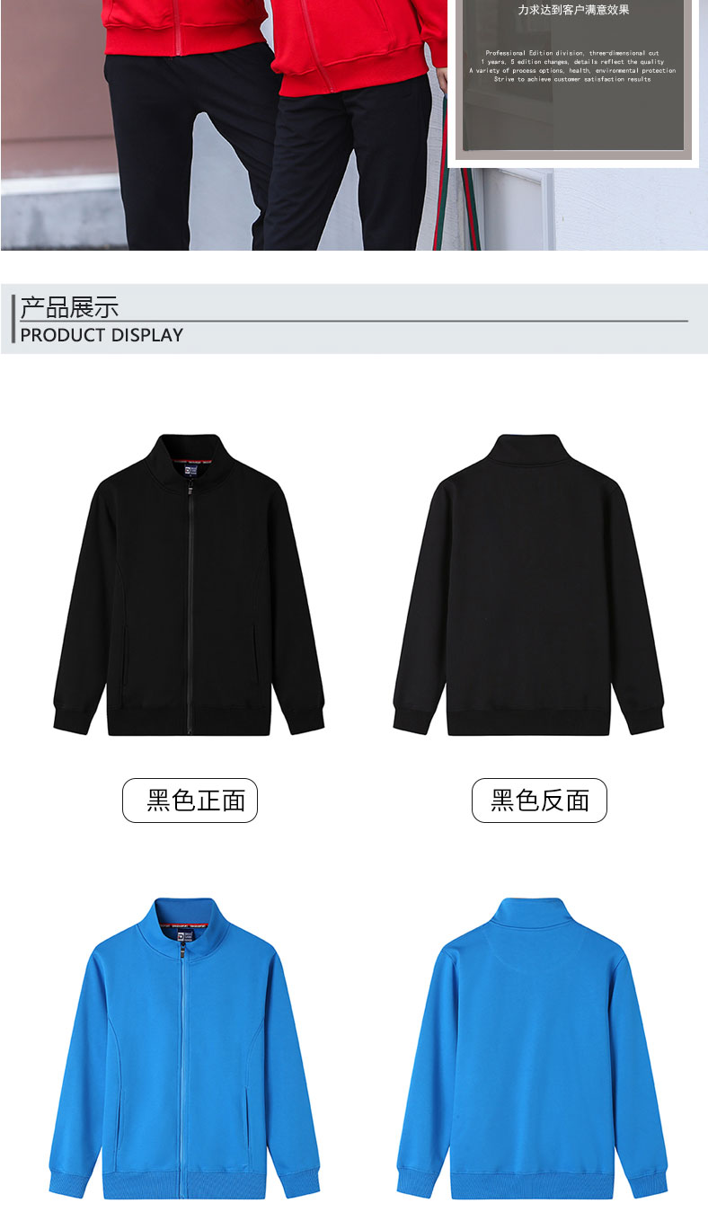 纯棉开衫立领拉链情侣卫衣上衣外套工作服定制logo工衣厂服印字标