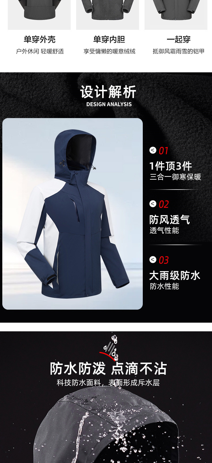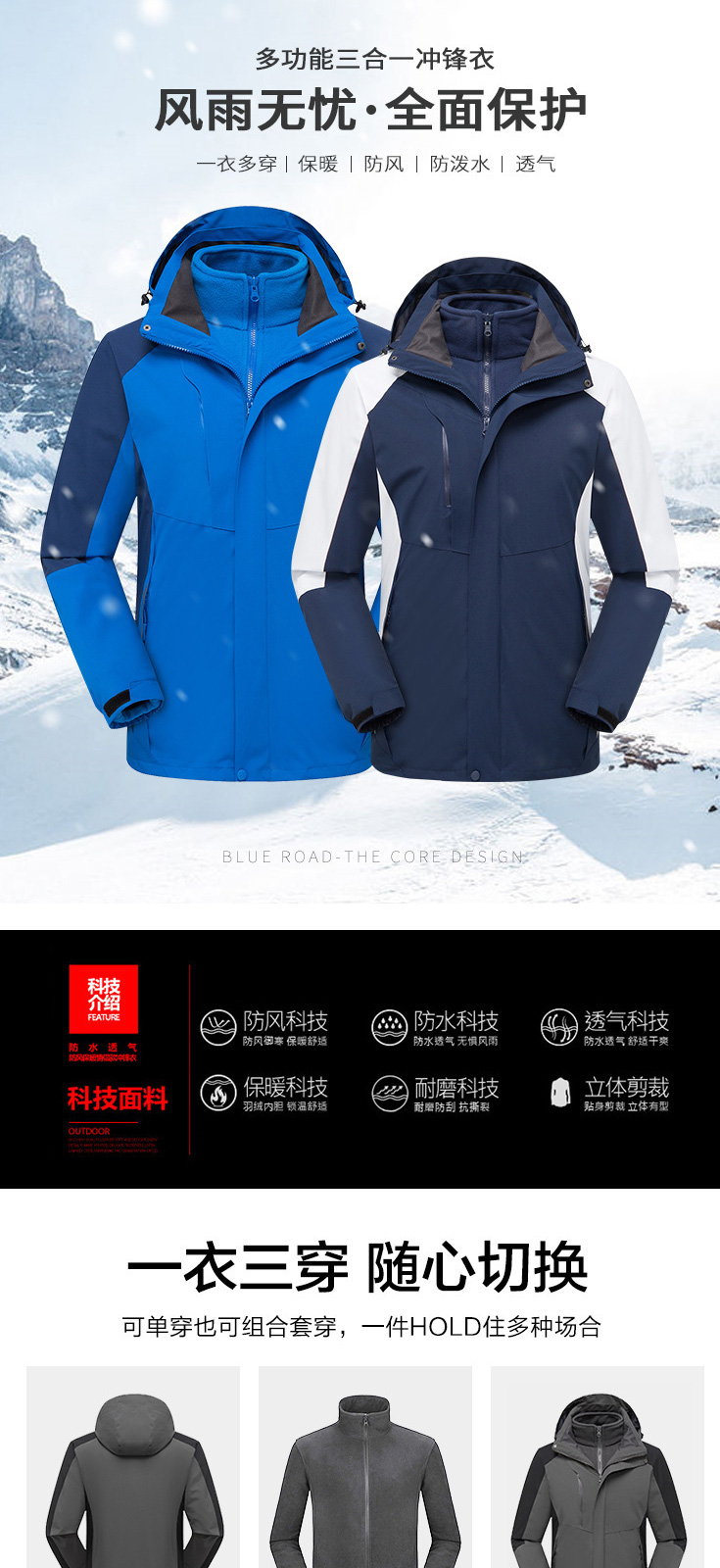 冲锋衣男三合一批发两件套团体服加厚登山服女防水保暖外套定LOGO