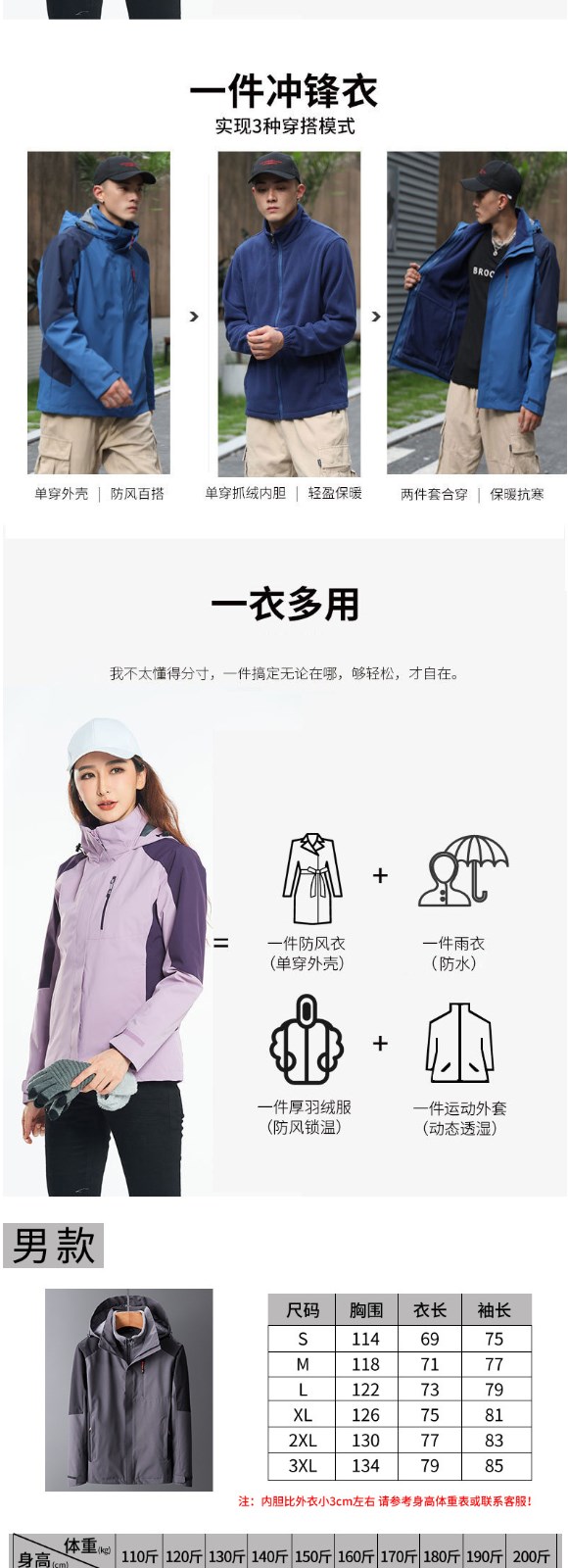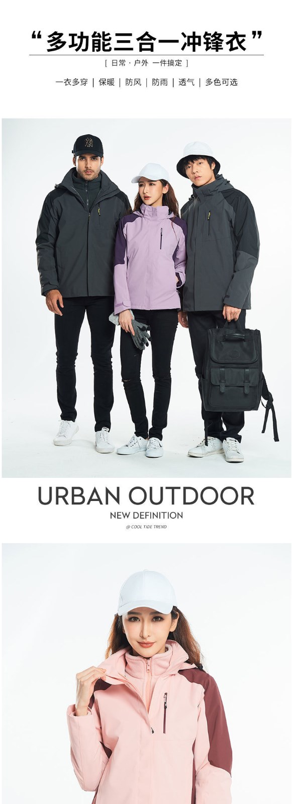 户外冲锋衣三合一可拆卸男女防水抓绒加厚两件套秋冬外套定制