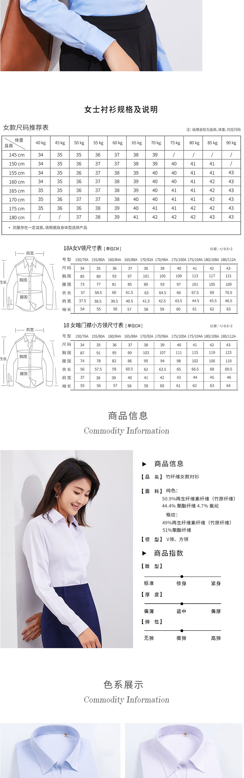 新款竹纤维弹力职业女装长袖白色衬衣团购批发LOGO