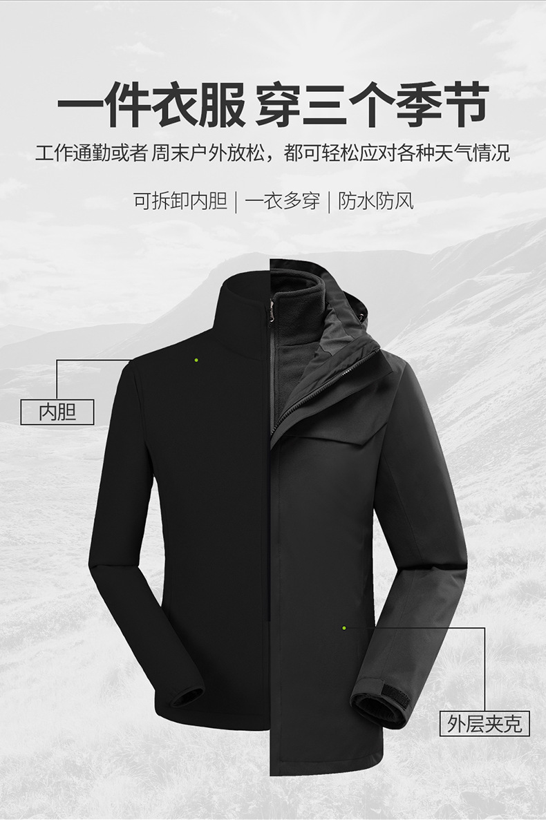 - 前一产品:三合一冲锋衣定制LOGO加绒加厚防水工作服登山服派克潮牌印字定做