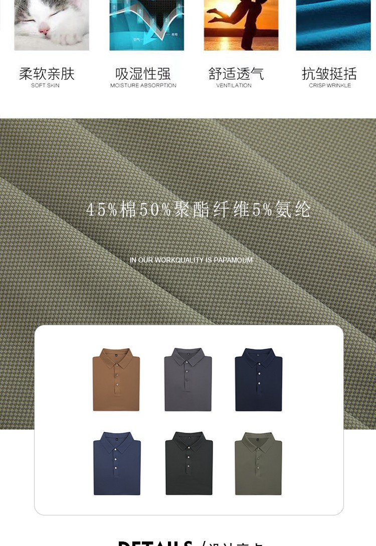 丝绸棉夏季翻领Polo衫定 制印logo广告衫T恤刺绣文化衫工作服批发