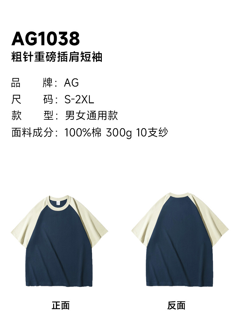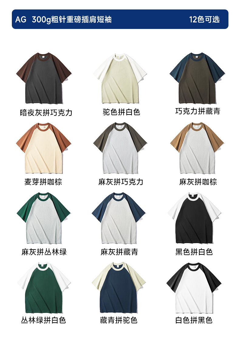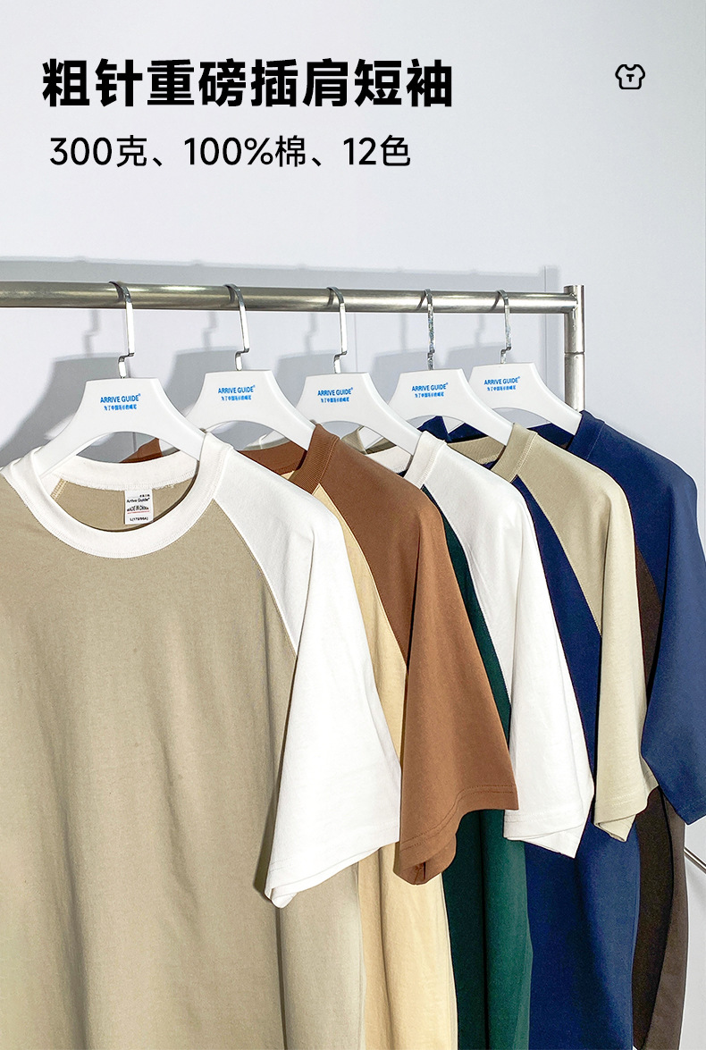300g粗针重磅插肩圆领短袖潮牌男女装纯棉T恤直喷图案刺绣