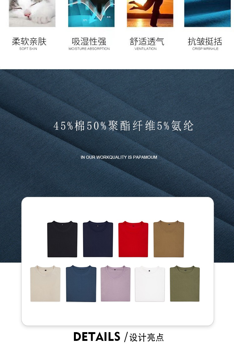 50支双纱丝光棉短袖圆领T恤男女通款工厂批发支持定制