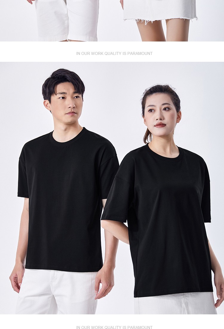 300g粗针重磅插肩圆领短袖潮牌男女装纯棉T恤直喷图案刺绣