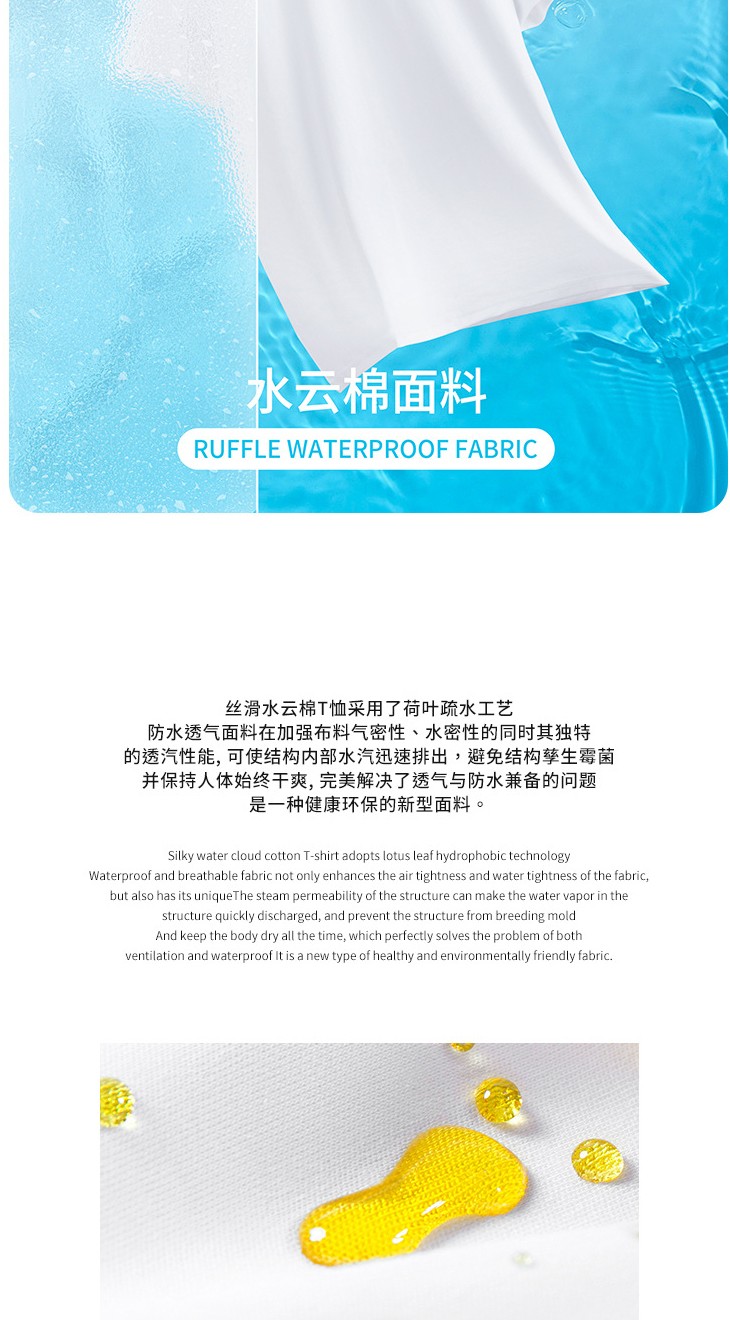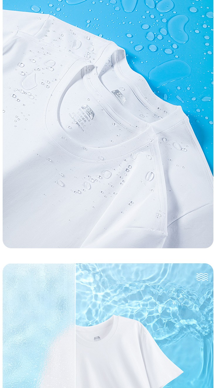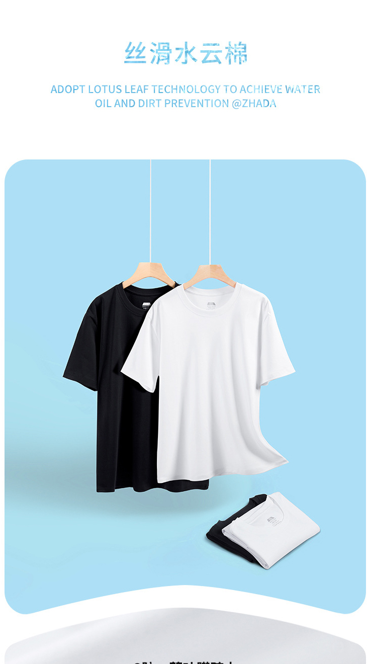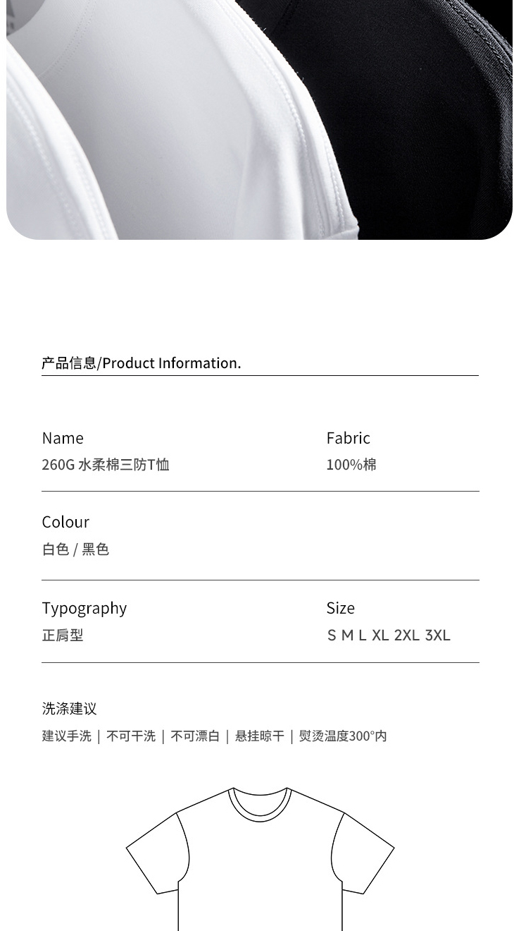 三防水云棉防泼溅污渍男女圆领短袖T恤夏季纯棉白色短袖印制图案